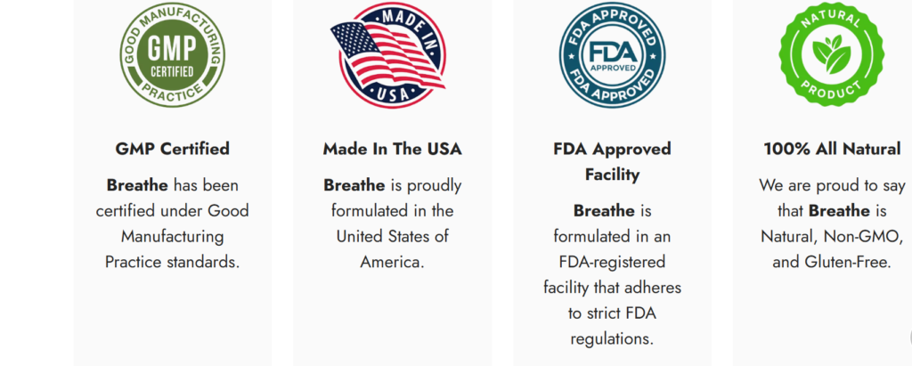 Breathe is classified as a dietary supplement and is not FDA-approved, but it is manufactured in a facility adhering to strict safety standards.